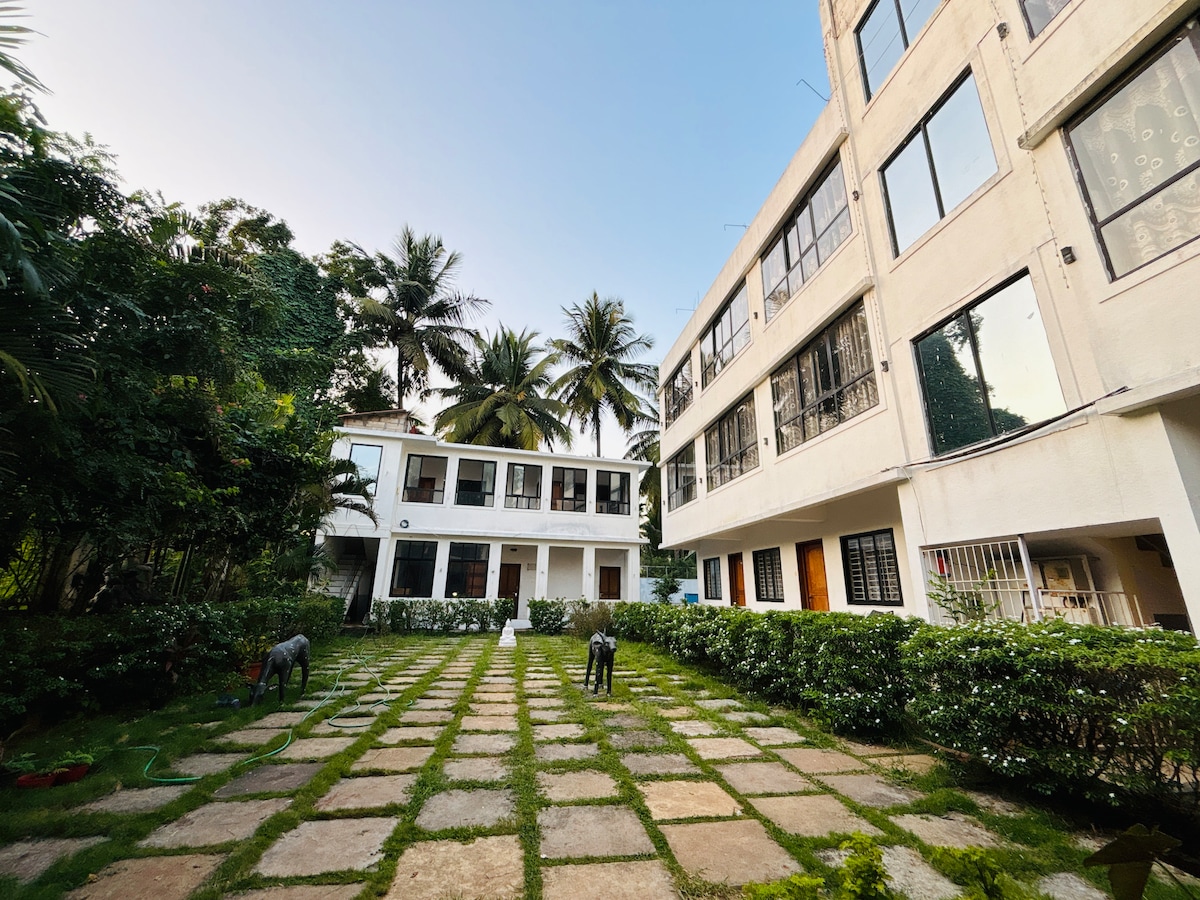 Avís: venda flaix! 🚨 Gaudeix d'una escapada per menys. Durant un temps limitat, gaudeix de tarifes exclusives en allotjaments de primera qualitat Situats al cor de Siolim, els nostres estudis ofereixen la combinació perfecta de comoditat i conveniència. Situat a pocs minuts dels llocs més populars de Goa, com Thalassa i Kiki's. L'allotjament és ideal per a aquells que busquen explorar la vibrant vida nocturna i les serenes platges del nord de Goa. 🍽️ Esmorzar: disponible per un cost addicional de 500 ₹ per persona (no inclòs en el preu actual).