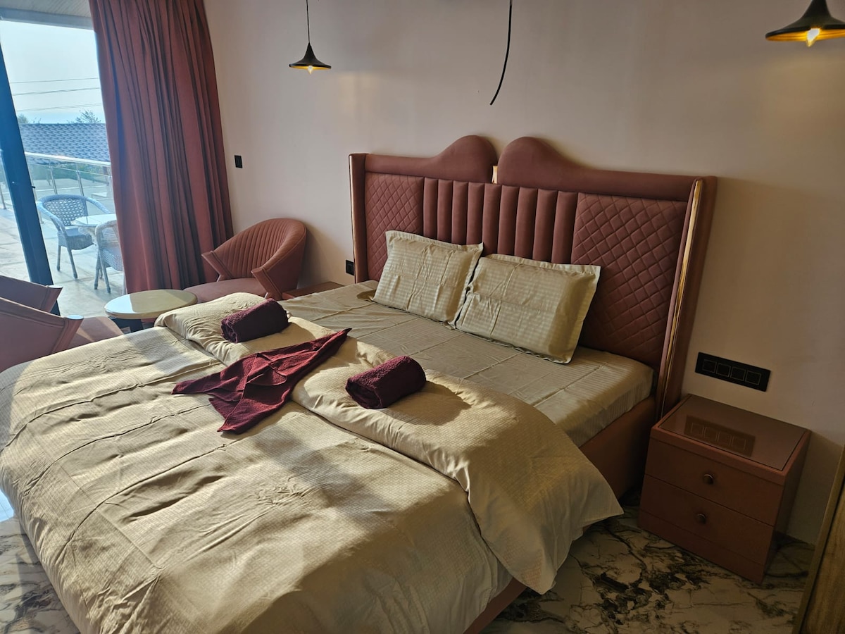 Aquestes són 2 unitats dels nostres semi estudis de luxe amb piscina al nostre hotel boutique que combina l'estil amb la senzillesa per donar-te la sensació de sentir-te com a casa. Cadascuna amb un llit gran i còmode on t'agradaria enfonsar-te, menjar deliciós i delícies visuals per tot arreu, Aquestes habitacions prometen capturar no només els teus ulls, sinó també el teu cor. Situat al cor de North Goa, a 5 minuts del Mall De Goa, tots els altres llocs d'interès, incloent-hi platges, llocs de festa, llocs històrics, etc., estan a una distància aproximada de 5-15 km.