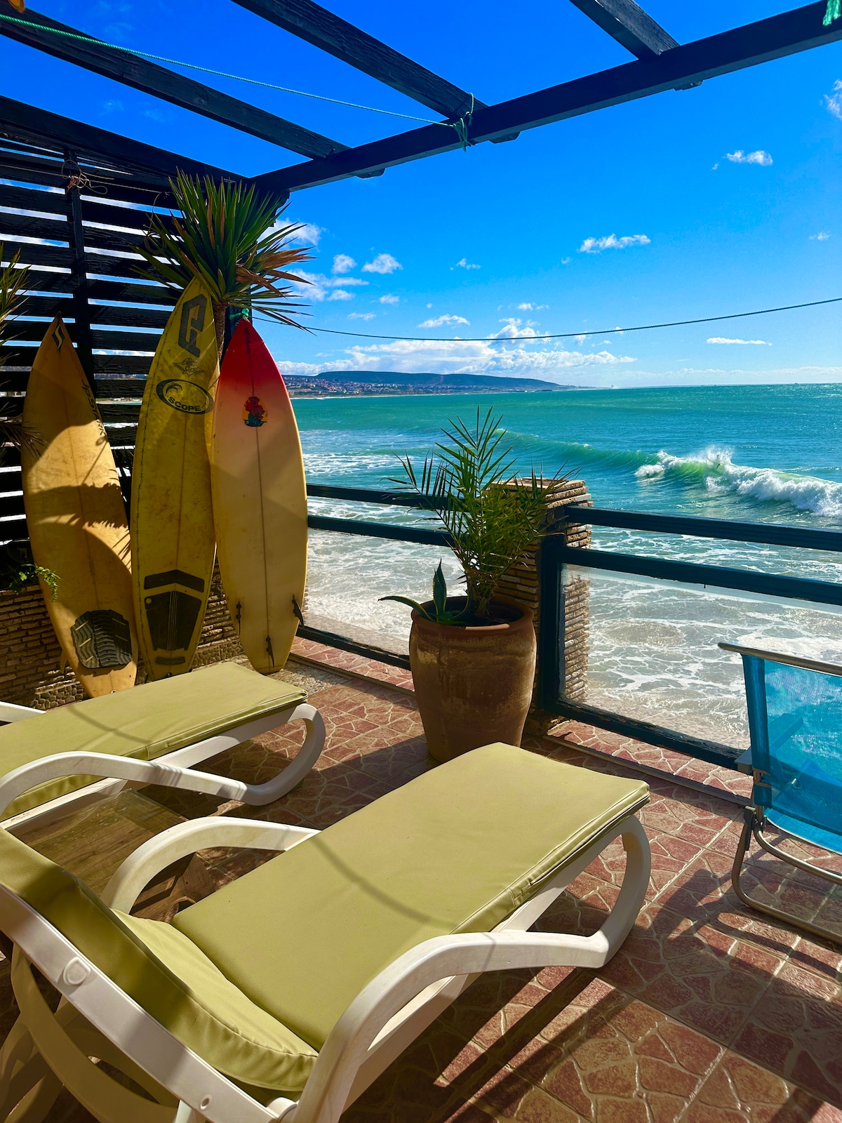 The Surf is located in Anza, between Taghazout and Agadir, just 5 minutes from the beach. It is close to the Marina of Agadir, the Danialand amusement park, and at the end of the road leading to the small surfer village of Taghazout.