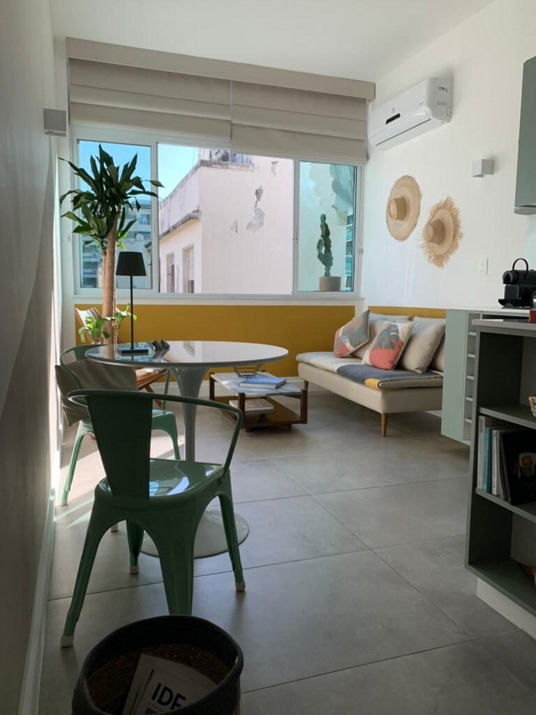 L'estudi Ipanema Beach es troba a només 2 blocs de la platja d'Ipanema, en una planta alta. Disposa d'una finestra gran i ofereix una generosa llum i una intimitat. L'estudi és nou. Està dissenyat per donar-te el màxim profit de la comoditat en un espai petit. Està equipat amb un llit queen size, cuina totalment equipada (placa de cuina, minibar, filtre d'aigua, Nespresso, planxa, rentadora, televisor intel·ligent, internet d'alta velocitat) Perfecte per a viatges d'oci i professional amb un estil minimalista