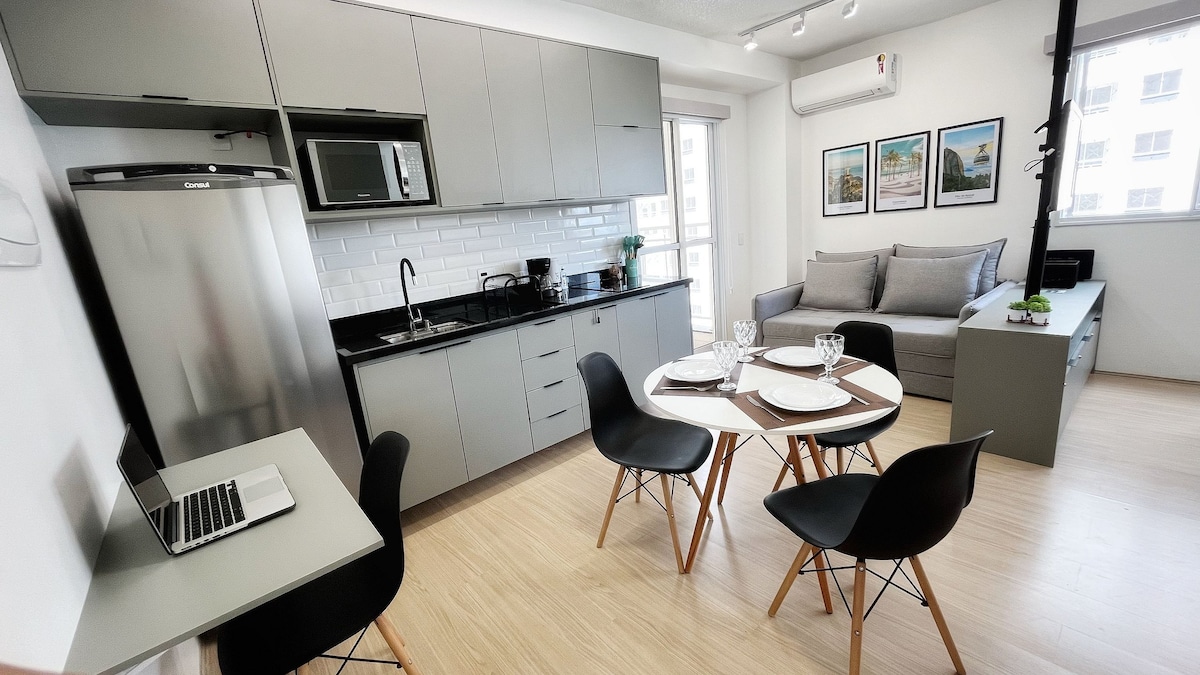 Et donem la benvinguda al nostre estudi! Estudi nou, modern i complet situat al costat de l'estació d'autobusos de Novo Rio, amb fàcil accés al VLT, que connecta directament amb l'aeroport de Santos Dumont i el centre de la ciutat. Preparat amb molt d'afecte per donar-te la benvinguda, situat en un condomini nou, segur i amb la millor posició estratègica per a la teva locomoció. Informació important: Un cop confirmada la reserva, envia una foto dels documents d'identitat de tots els hostes.