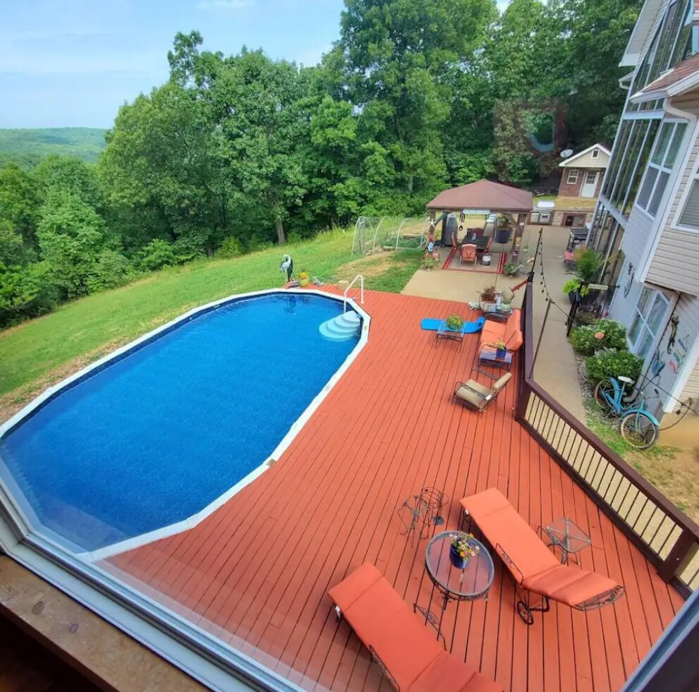 Una cabana en un arbre única, a 6 milles d'Hermann, MO, ofereix una escapada de luxe amb vistes impressionants i postes de sol. Situat sobre pilotes per l'àrea de conservació Daniel Boone, gaudeix de la tranquil·litat, el senderisme i la fauna salvatge. Relaxa't en un llit «king size» sota claraboies, banya't en una banyera o relaxa't a la banyera d'hidromassatge i a la llar de foc. A només un quilòmetre del Katy Trail, perfecte per anar en bicicleta o relaxar-se. Descobreix els cellers, les botigues i els esdeveniments d'Hermann. Transport disponible des de Hermann Trolley, Uber i Lyft. Capacitat per a 2 adults.