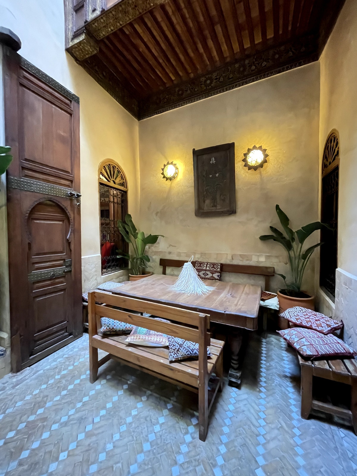 "Dar Le Petit Bijou" és una de les cases més antigues del Marroc! Aquesta encantadora casa semblant a un capoll data del segle XIV i ha estat totalment reformada durant més de 2 anys pels millors artesans de la ciutat amb tots els materials més nobles, com el zellige (rajoles fetes a mà), fusta de cedre, guix esculpit, tadelakt i ferro forjat. Les làmpades són de bronze i estan totalment tallades a mà, els poufs de cuir i els sofàs són de curtidors locals.