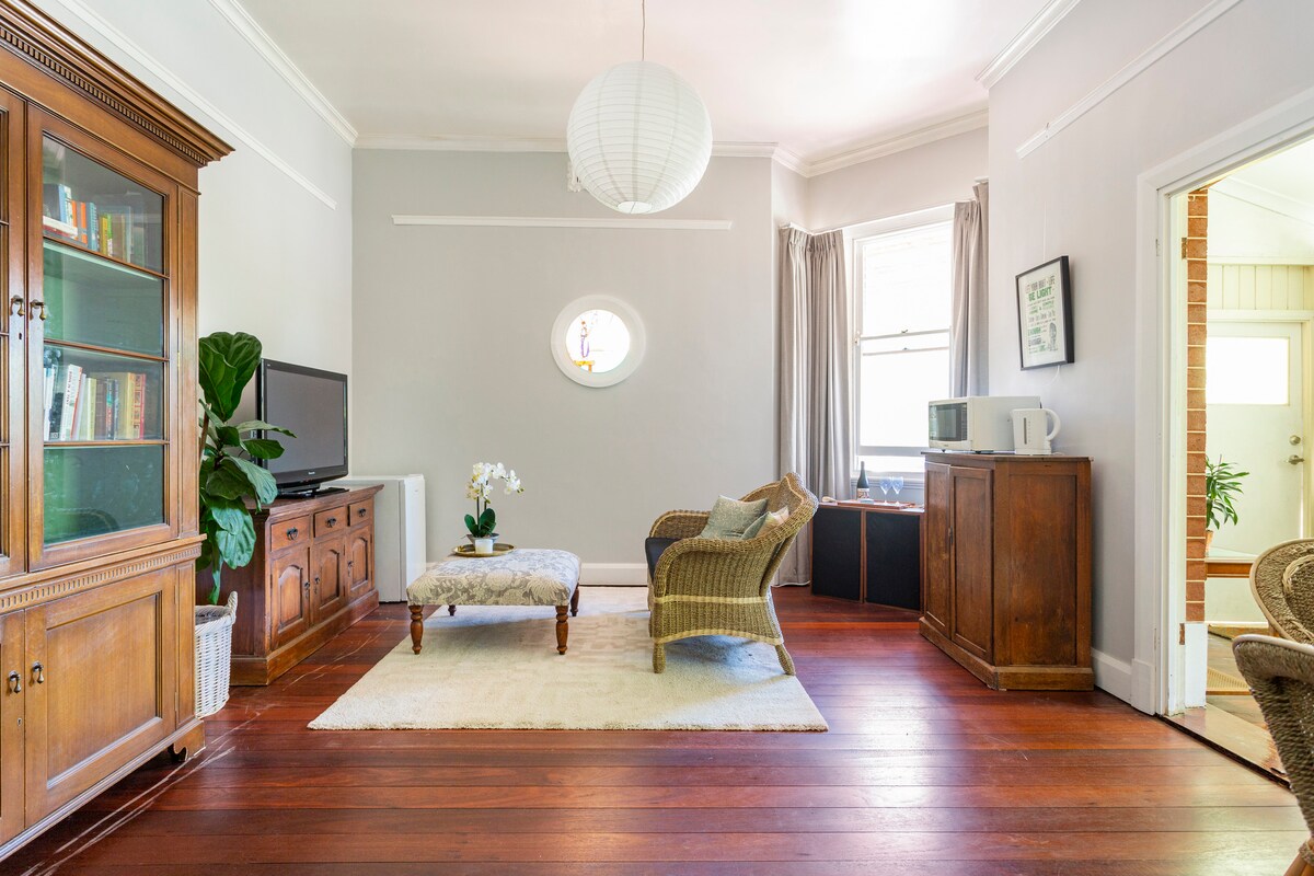 La nostra espaiosa suite per a hostes, de 100 anys d'antiguitat, està a poca distància a peu de la Universitat d'Austràlia Occidental, l'Hospital Infantil de Perth, Sir Charles Gairdner i l'Hospital Hollywood. Consta d'una gran sala d'estar que connecta amb un dormitori espaiós amb un gran bany privat recentment renovat. L'accés és a través d'una entrada privada a la part davantera de la nostra casa. Vivim a la part posterior de la casa, així que estem disponibles per satisfer les teves necessitats. Tingues en compte que no hi ha rentadora ni equipament de cuina. Fa poc hem instal·lat un aire condicionat!