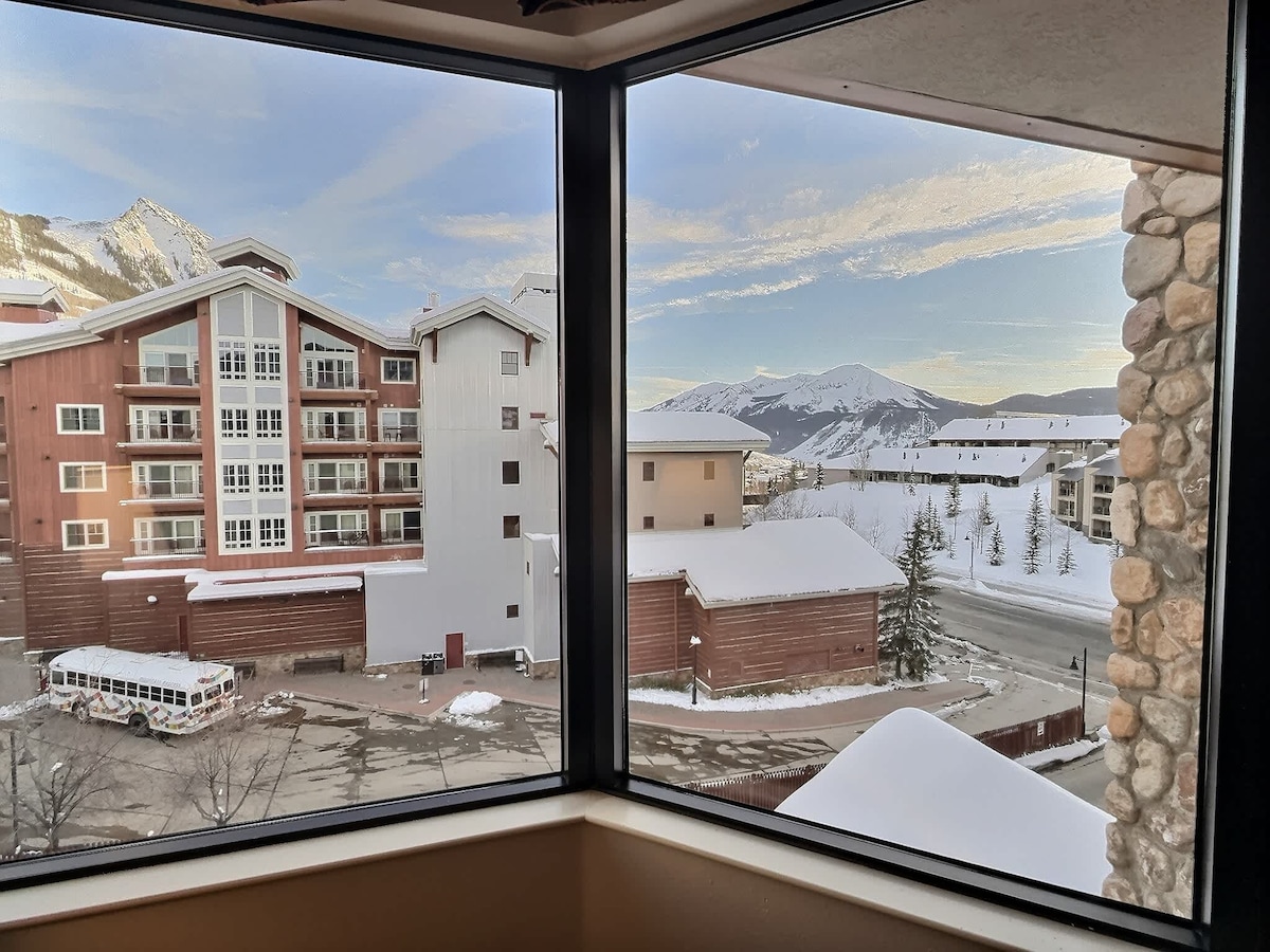 Un dels apartaments més valorats de Crested Butte: ara es divideix com a suite principal - La millor ubicació - autèntic entrada i sortida d'esquí a l'ascensor Westwall - Vistes increïbles de la muntanya Emmons i Scarp Ridge des de la coberta. - Bany nou 2021 - Mininevera/congelador, microones, màquina Keurig (sense fogons ni pica) - Matalàs nou amb cobertor de primera qualitat - súper còmode - Banyera d'hidromassatge a l'edifici (només temporada d'esquí) - Accés gratuït a/des de la ciutat i a l'escola d'esquí/base. - Nou televisor intel·ligent 4KUHD amb streaming - S'admeten animals de companyia (màxim 2 gossos)