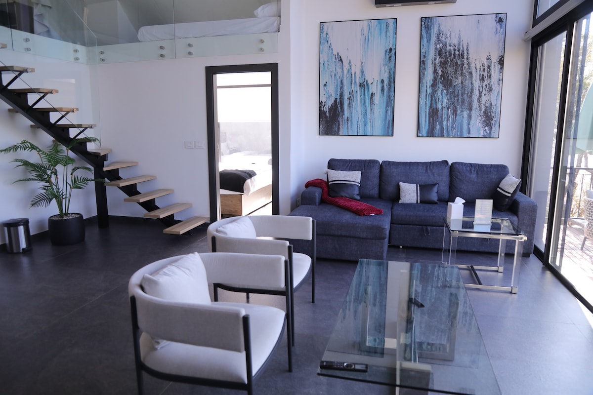 A Skyloft, pots gaudir d'un dormitori acollidor, una gran sala d'estar de fusta amb llar de foc, una cuina americana equipada i una àmplia terrassa amb piscina privada perfecta per a qualsevol esdeveniment. Ideal per a una escapada relaxant amb vistes fantàstiques i tot el que necessites!