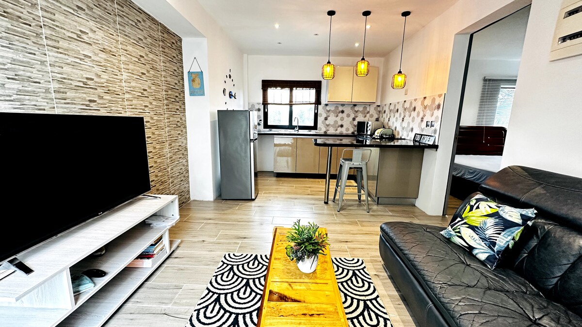 Gaudeix d'una experiència amb estil en aquest allotjament a Airbnb situat al centre. Aquest modern apartament de dues habitacions al cor de Quatre-Bornes ofereix comoditat i confort, amb dos banys (un privat), una cuina totalment equipada i una acollidora sala d'estar. A l'exterior, trobaràs el basar, el supermercat, l'estació de metro, la farmàcia i restaurants fantàstics a poca distància a peu, perfectes tant per a estades d'oci com de negocis.