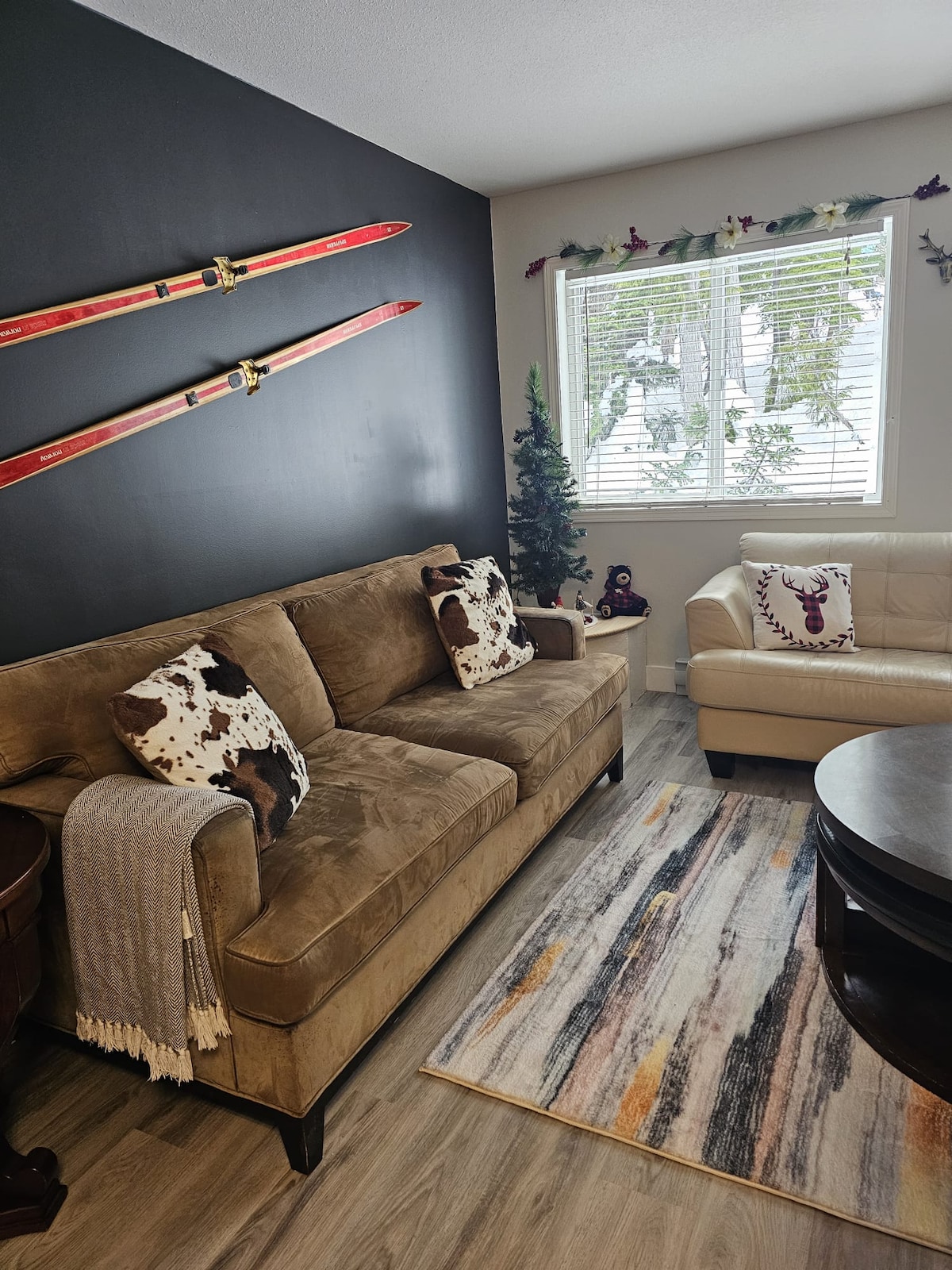 Es tracta d'un apartament d'un dormitori a la planta superior recentment reformat a Ptarmigan Ridge amb vistes a la pista. Entrada i sortida en cotxe i 100 metres per entrar i sortir d'esquí. La sala d'estar té una llar de foc de propà i un televisor de 48" amb cable i reproductor de DVD. Els dos llits individuals de doble cara amb coixí superior del dormitori es poden fer per separat o juntar-se i fer-se com un llit «king size». El dormitori té el seu propi televisor muntat a la paret de 32"amb reproductor de DVD. Cuina totalment equipada. El llit plegable es desplega al menjador.