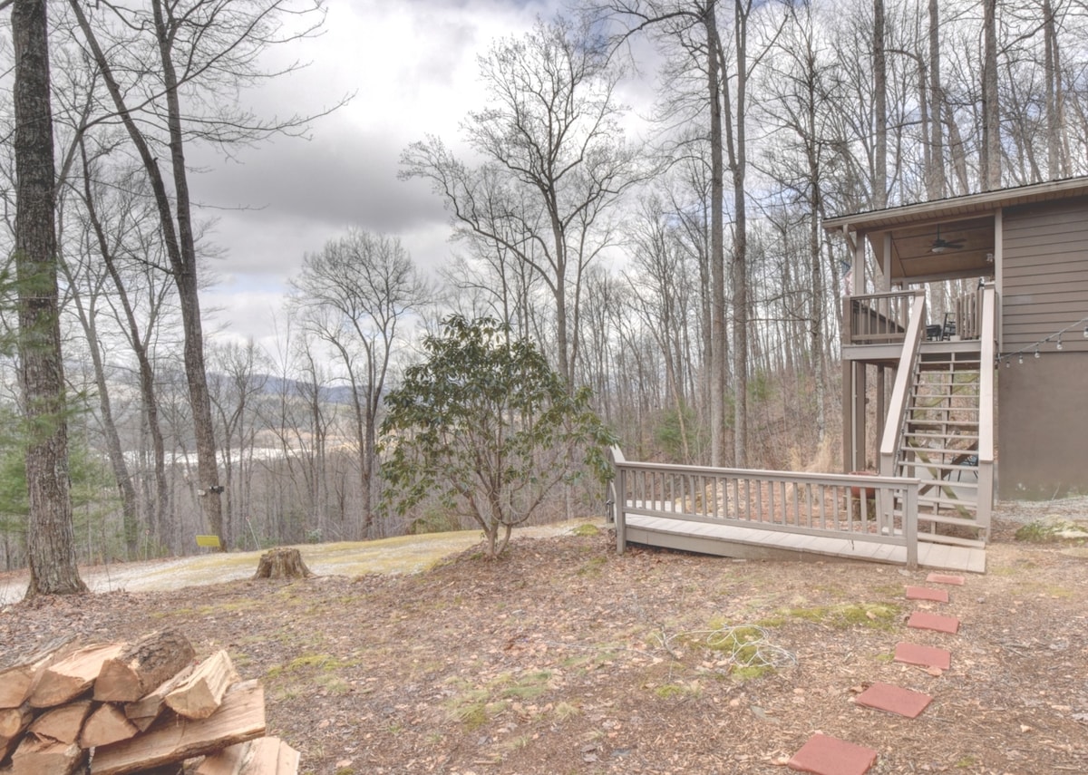 • 3 llits/2 banys 🛏️ • Cabana moderna recentment renovada (2021) de 1100 peus quadrats 🔨 • S'admeten animals de companyia 🐶 • Vistes a la muntanya amb banyera d'hidromassatge 👀 • Camina pel parc estatal des de la caseta. 🥾 • Zona per fer foc a l'aire lliure 🔥 • Alçada de 2700’ ⛰️ • A 7 minuts del centre de Clayton. 🍴 🛍️ 🍸 Una experiència realment única! Vine a fer senderisme pels camins de Black Rock Mtn. State Park des de la porta principal i després gaudeix de les increïbles vistes de la muntanya des de la banyera d'hidromassatge.