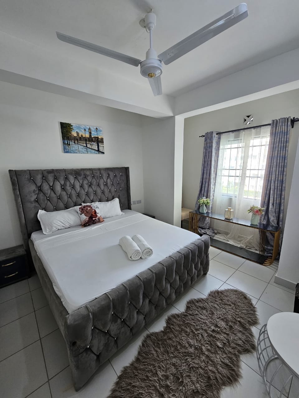 Un acollidor apartament estudi amb serveis (Bamburi) moblat *Apte per a 2 adults i 1 nen o 3 adults, moblat amb un llit queen size i un llit individual. * Neteja diària inclosa * Taula de menjador amb quatre cadires, sofà i taula de centre *Aire condicionat *Televisor *Bloqueja la caixa forta * Balcó: dues cadires, taula de centre *Cuina: nevera, microones, bullidor, cafetera, torradora, vaixella, coberts *Accés als serveis: piscina, zona de jocs infantils, bar de platja, restaurant, gimnàs, platja, bugaderia. * A 21 km de l'aeroport de Moi Int. * A 26 km de SGR Mombasa.