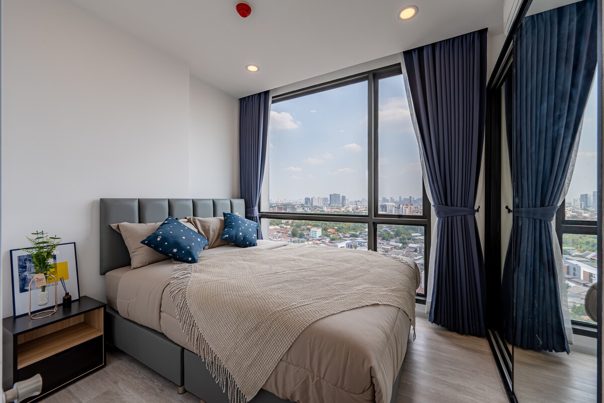 Un apartament de luxe a Chatuchak, Bangkok. L'habitació es troba a la planta superior 21 de l'edifici B amb vistes impressionants, totalment moblada, totalment privacitat, tranquil·la i segura. Molts restaurants i cafeteries deliciosos al voltant i a prop del famós mercat de cap de setmana de Chatuchak. Accés fàcil al transport públic, MRT Bangson, autopista als aeroports. Perfecte i adequat per a parelles i viatgers llargs.