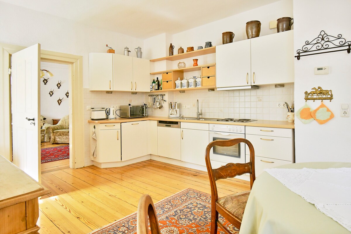 L'apartament de 70 m² està situat a la planta baixa en un lloc tranquil i idíl·lic a la nostra granja de tres costats. Des de la sala d'estar, accedeixes a la terrassa . Pots caminar per les vinyes en 15 minuts i arribar al Seußlitzer Schloß. El Elbradweg està a només 400 m de distància. Aparcament per a cotxes , així com l'ús de 2 bicicletes és gratuït , això també s'aplica a l'emmagatzematge de les seves bicicletes i a l'estadi de càrrega associat. Moritzburg, Meissen i Dresden són grans destinacions d'excursions.