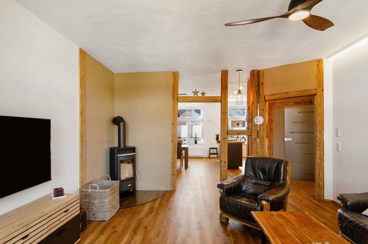 Gaudeix del nostre apartament decorat amb molt d'amor. L'apartament amb jardí es troba al bell mig del nucli antic històric i, tot i això, és tranquil. Descobreix les pintoresques cases de fusta de Duderstadt, fes senderisme a la propera Harz i gaudeix de la barreja perfecta de cultura i natura. Ideal per a viatges de negocis, parelles i famílies petites. Els gossos són benvinguts! La wifi està inclosa i el nostre servei de begudes garanteix una estada còmoda.
