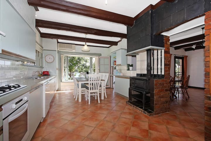 Casa antiga meravellosa renovada i moblada amb un estil modern/campestre amb una decoració fresca i colorida. Tres dormitoris dobles amb ventiladors de sostre. Situat a la petita ciutat de Wahgunyah, a prop del riu Murray (a dues maneres) i de les meravelloses rutes per caminar/muntar. També a prop de cellers emblemàtics Cofields, All Saints, Pfeiffers i altres coses. Passejada per Old Bridge fins a Corowa. S'ofereixen esmorzars lleugers. Les mascotes són benvingudes.