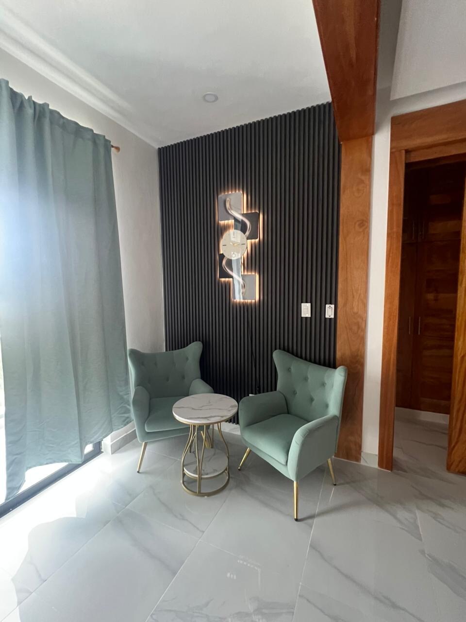 Apartament nou que t'ofereix accés exclusiu a un paradís privat al terrat amb vistes panoràmiques dels turons de Puerto Plata des del nostre Picuzzy. Submergeix-te en la relaxació a la piscina impecable, una joia amagada per als nostres hostes, i la platja de Playa Dorada, assolellada, està a 5 minuts. A l'interior, descobriràs tres dormitoris espaiosos, cadascun equipat amb aire condicionat refrescant per garantir la teva comoditat. La sala d'estar és el teu acollidor refugi per gaudir de nits de cinema inoblidables i passar temps de qualitat amb els teus.