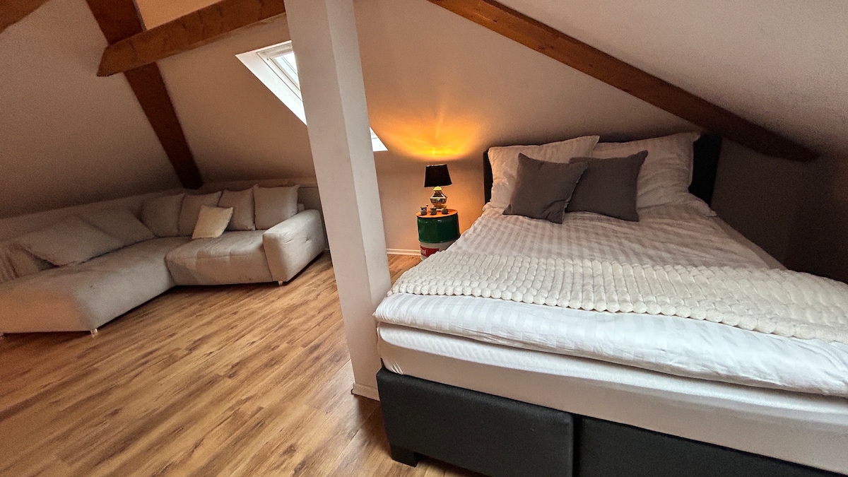 Aquest pis és el resultat de la passió pel disseny d'interiors, el factor divertit d'allotjar hostes i moltes, moltes hores de treball com a constructor d'habitatges. Nosaltres, Lisa i Heinrich, et donem la benvinguda a Bad Bentheim. El nostre encantador pis té una ubicació cèntrica i ofereix molt d'espai per relaxar-se i deixar-te anar uns 70 m2. El caràcter únic del loft és ideal per a una estada de 2 persones amb la possibilitat d'allotjar una tercera persona.