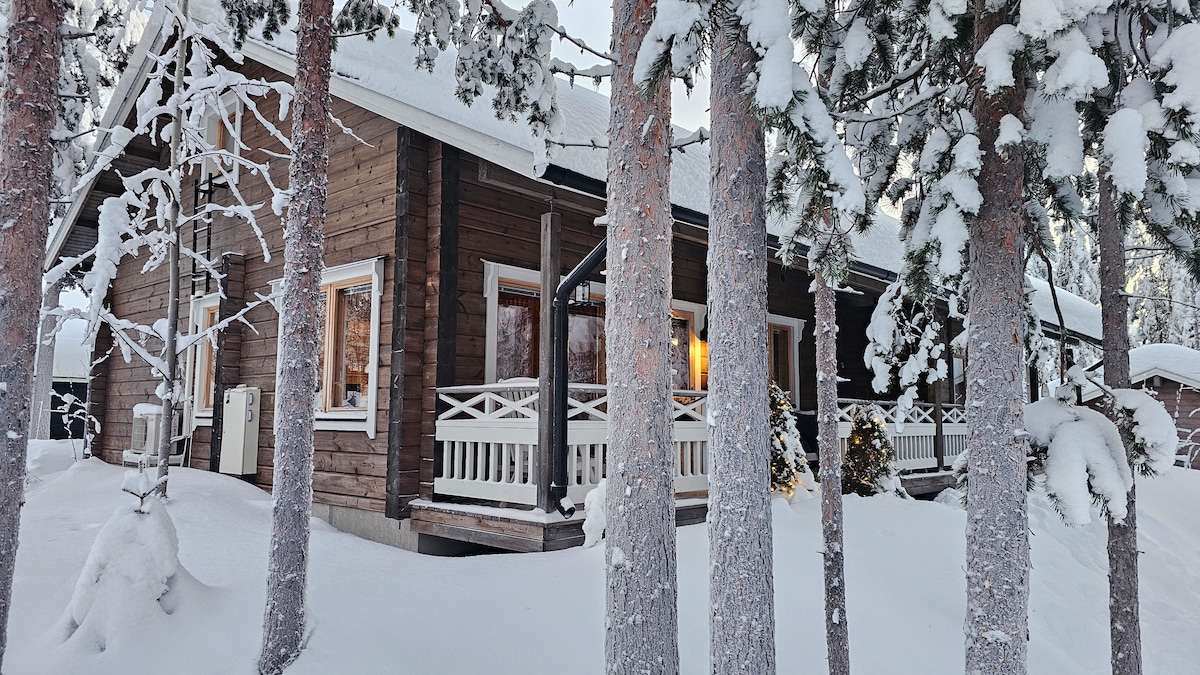 La nova i acollidora caseta et convida a gaudir de la màgica tranquil·litat de Lapònia, on es troben el silenci de la natura àrtica i diverses activitats. Les pistes d'esquí, les pistes i les pistes per a motos de neu són a pocs minuts i l'autobús d'esquí s'atura a uns 300 metres. La casa rural té un ambient càlid: les superfícies de troncs, una llar de foc i una sauna creen l'entorn perfecte per relaxar-se. Et donem la benvinguda a l'autèntic ambient de Lapònia, un lloc on el temps es redueix i la natura s'acosta.