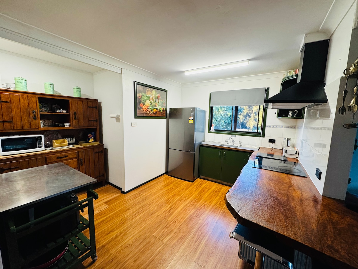 La propietat es troba en una zona aïllada de 4 hectàrees. Tan bon punt entris per la porta, et sentiràs relaxat a l'instant, amb vistes majestuoses a la muntanya Pigeon House i a l'escarpa de Budawang, amb un paisatge rural tranquil com a teló de fons. La bellesa de la ubicació és insuperable. Estufa de combustió lenta (no s'inclou la llenya), manta elèctrica i aire condicionat per a la teva comoditat! Wifi gratuït a l'allotjament.