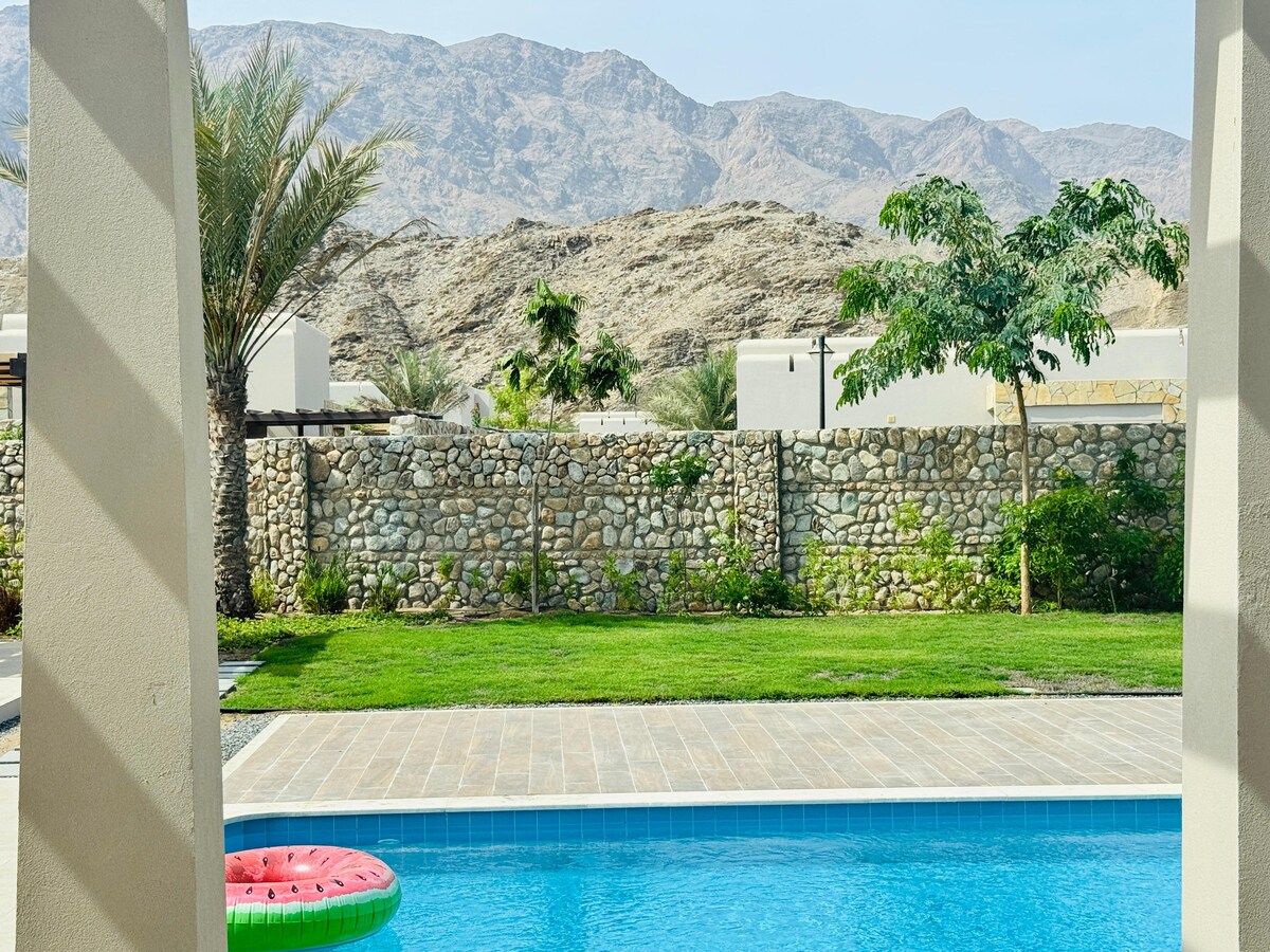Estil de casa de pagès amb piscina privada climatitzada, zona de barbacoa i foguera. Situat a Jebel Sifa Resort amb accés a platja privada. Vista impressionant de la muntanya Hajar. Moltes activitats dins del complex i cafeteries a la platja. Alguns restaurants internacionals