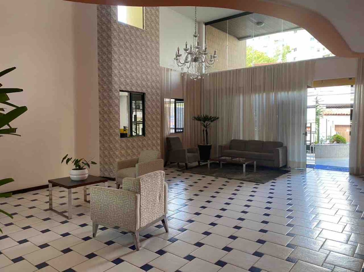 Apartamento finamente decorado a poucos passos das melhores Praias, do Farol Barra e de ótimos bares e restaurantes. Rooftop com Piscina e vista 360° do mar! 🌊 Smart TV e Ar Condicionado na Sala e Quarto, Sofá-cama em linho, impermeabilizado e Cama Queen desenvolvida para rede Hoteleira, super confortável. Cozinha e Lavanderia completas com todos os utensílios para sua estadia! Localizado no circuito do Carnaval de Salvador (Circuito Barra-Ondina) Portaria 24h e Estacionamento Rotativo.