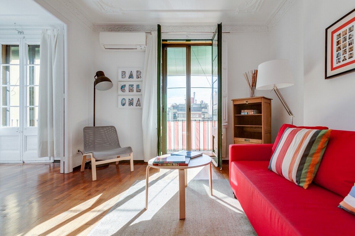 El temps passarà i recordaràs les postes de sol màgiques de Barcelona mentre veies el pols de la ciutat des del gran balcó amb terrassa. De això es tracta els viatges, records que tindrem per sempre. Aquest magnífic i espaiós pis, amb mobles de disseny retro i detalls al centre, és l'allotjament ideal per a les teves vacances de somni.