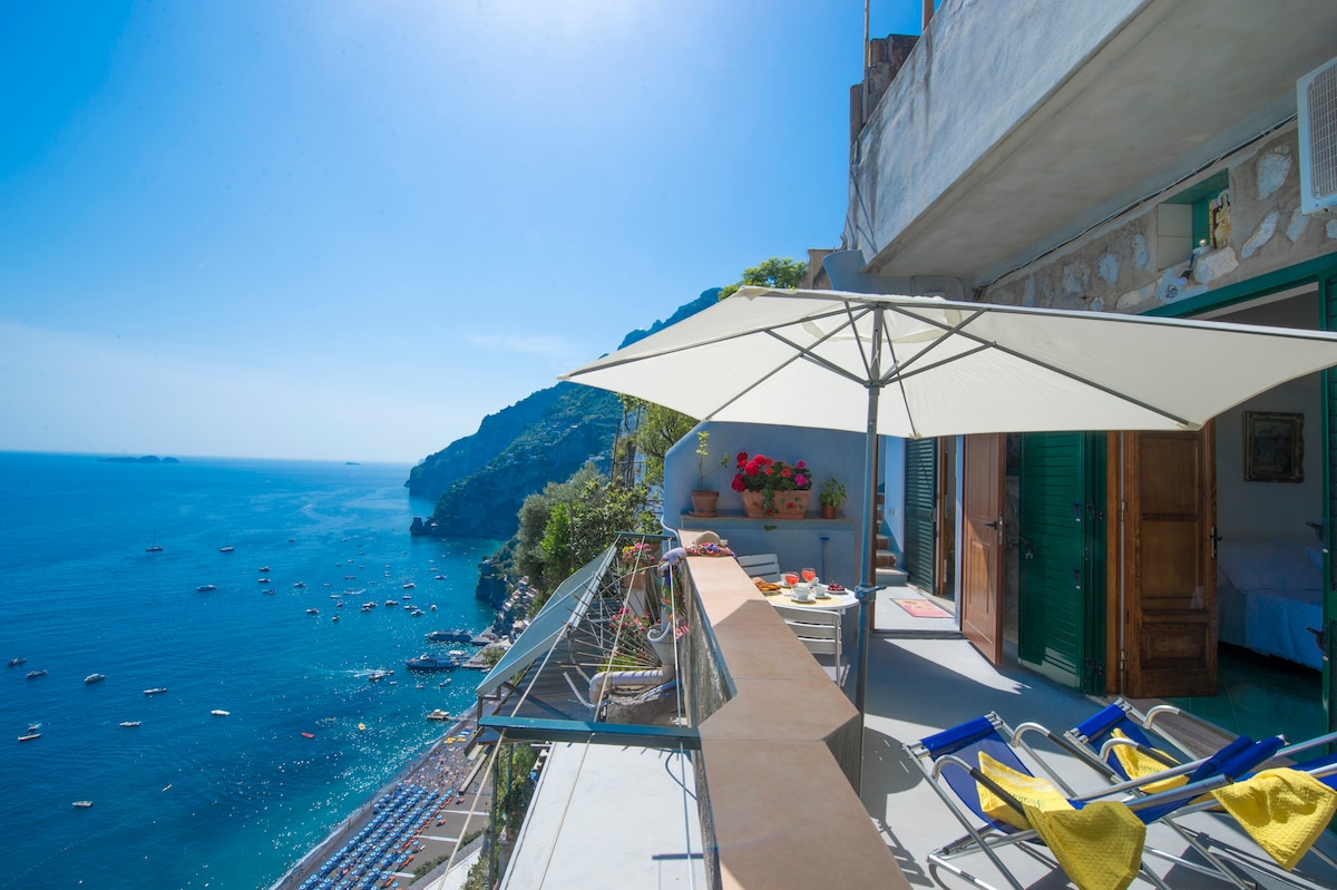 Elegant i ampli apartament d'estil típic mediterrani amb una gran terrassa, envoltat de vegetació, des de la qual es pot admirar la bella badia de Positano. Ideal per a aquells que vulguin passar unes vacances inoblidables de relax i allunyats del bullici de la ciutat, però a pocs passos de la vida activa del centre. Un petit racó del paradís al teu abast.