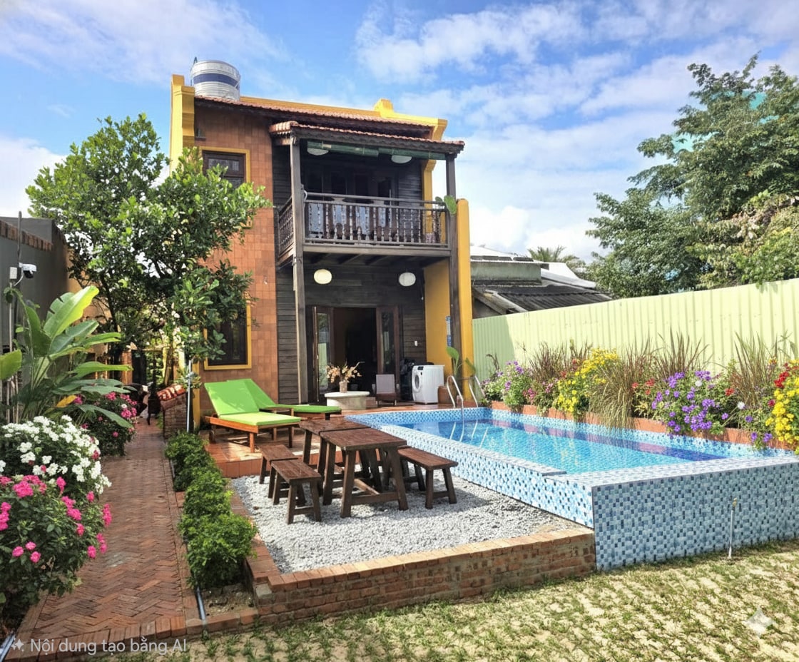 Casa Villa es troba als costats que es reflecteix en el riu just sota el porxo, la zona del jardí amb molts arbres i la piscina privada amb un espai espaiós t'ajudarà a trobar tranquil·litat a la teva ànima. El disseny d'estil indochí és una combinació tant de sofisticació com de prominència entre la nostàlgia de la tradició asiàtica i el romanticisme i la modernitat de l'arquitectura francesa. Et portarà una sensació impressionant de relaxació. Una barreja de camp vietnamita i una Indochina nostàlgica.