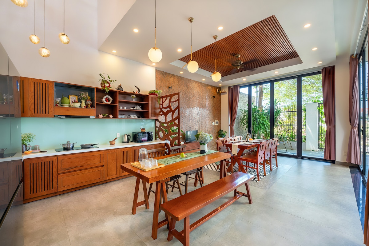 Situada al cor de la tranquil·la An Bang Fishing Village, Rainbow Beach Pool House amb 3 dormitoris i l'espai obert de la sala d'estar i el disseny de la cuina està enclavat al petit carreró tranquil i tranquil. A només 3 minuts a peu de la preciosa platja i bang. El mercat local del matí està a només 200 metres de la casa. El poble de verdures de Tra Que, An My Rice, estan a només uns minuts. Rainbow s'ofereix com a casa privada amb menjador independent, adequada per a famílies o grups de fins a 6 persones.