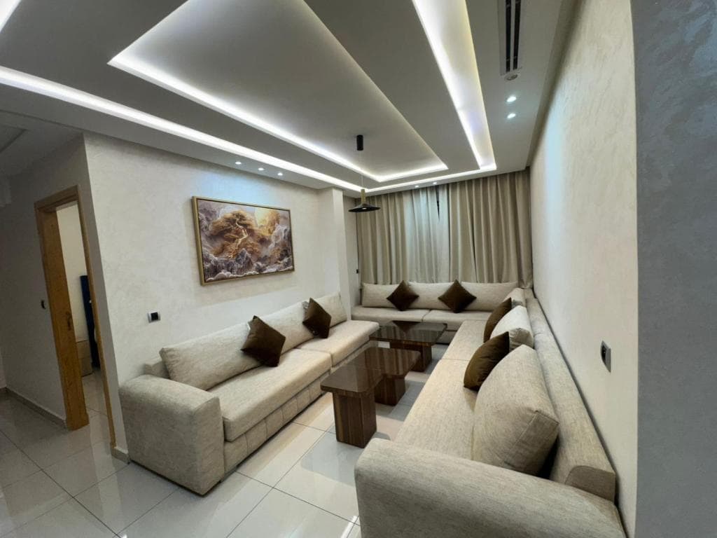 Pis modern i lluminós, perfecte per a unes vacances en família. Disposa de 2 dormitoris: un amb llit de matrimoni i un altre amb 2 llits individuals, una cuina equipada i una sala d'estar espaiosa. Situat en una zona tranquil·la, ofereix totes les comoditats que necessites. D'acord amb la legislació marroquina, només s'accepten parelles casades. També tindràs aire condicionat, wifi i un espai net i en bon estat per gaudir d'una estada agradable.