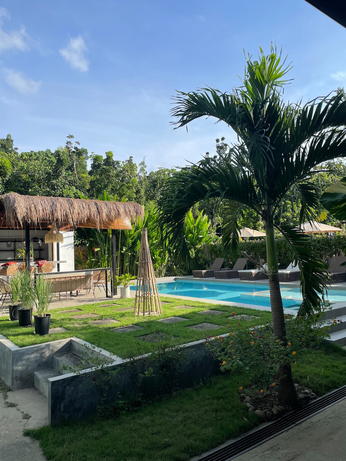 Escapa't al teu oasi de bambú. Descobreix aquesta cabana de bambú única i artesanal a 10 minuts de l'aeroport de Puerto Princesa. Construït amb materials naturals, aquest acollidor refugi combina l'encant rústic amb la comoditat moderna. Gaudeix d'una piscina, relaxa't a la dutxa privada i gaudeix del cafè del matí a la terrassa. La cabana disposa d'un dormitori còmode, un bany privat i una cuina petita per als elements bàsics de l'escapada. Gaudeix d'un allotjament únic i ecològic a una illa on la natura es troba amb la comoditat.