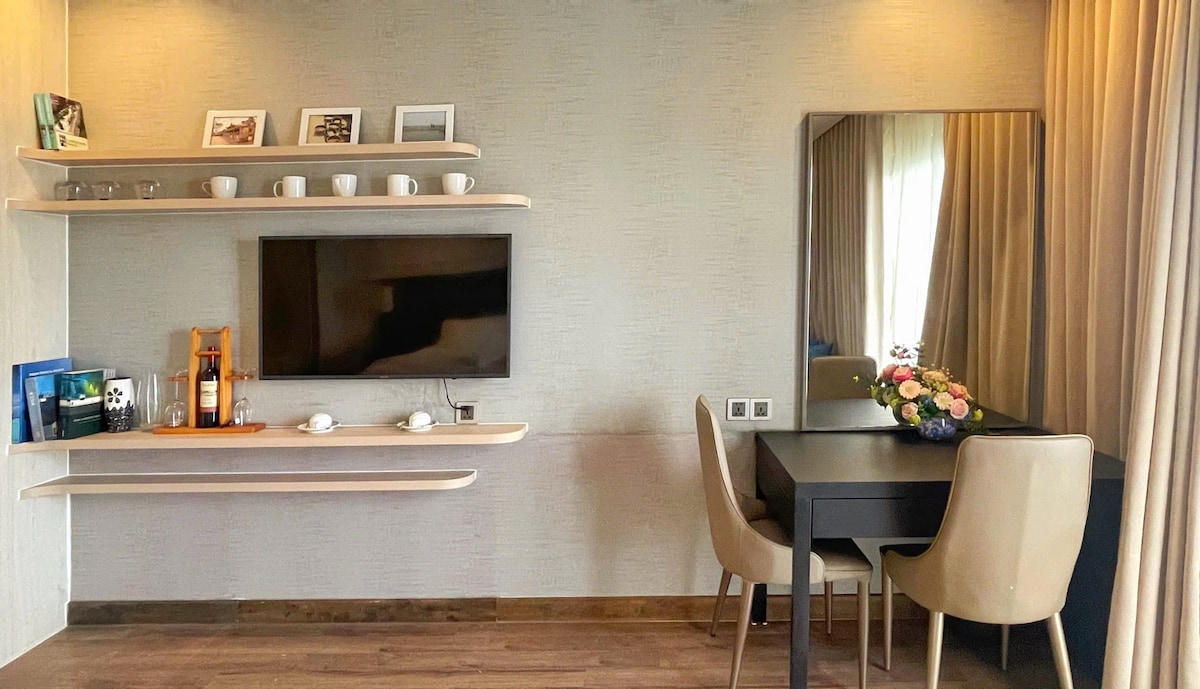 The apartment has a beautiful view of the bridge and mountains, especially in the evening when the bridge is lit up, creating a romantic scene. The apartment is located in a sparsely populated area, quiet, not noisy, an ideal place to relax and enjoy a comfortable living space, in harmony with nature and the surrounding landscape. The 5-star infinity pool is located on the top floor of the building. You will be registered to use it for free as soon as you checkin