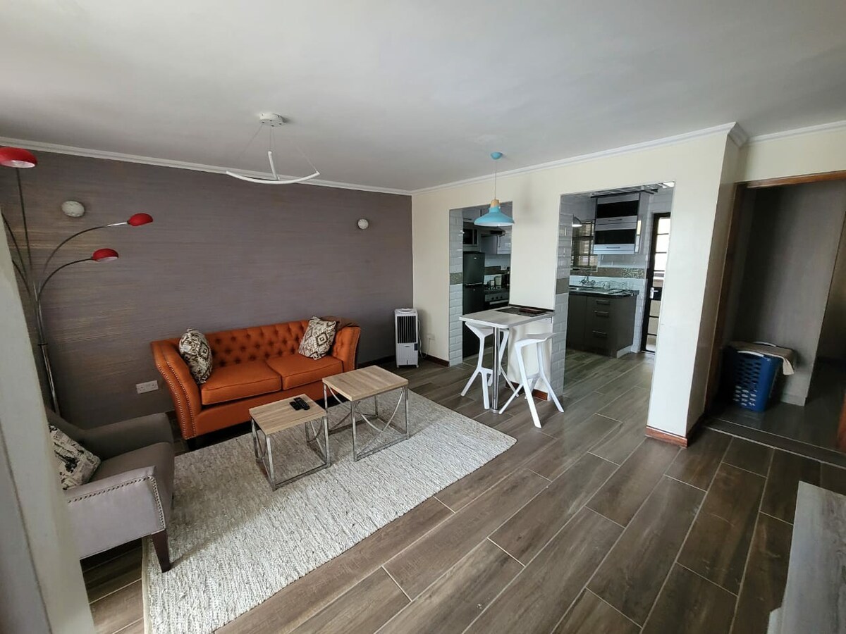This cozy one-bedroom flat in Kileleshwa, Nairobi offers modern comfort with an open-plan lounge, dining, and kitchen space. Large windows flood the room with natural light. The bedroom features a queen bed and built-in wardrobes. An ensuite bathroom with sleek fixtures complements the layout. Close to shopping malls, restaurants, and transport, this flat combines convenience and privacy, ideal for urban professionals