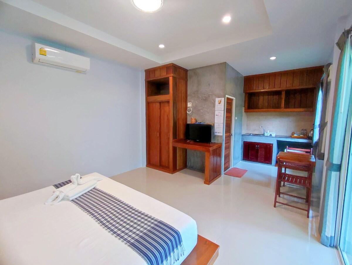 Pis renovat de 32 m², de mida mitjana, al 7è pis d'un edifici dissenyat en una petita muntanya. Un allotjament privat i tranquil a prop de la platja de Naiyang Zona 📍destacada - Vista de Paronama des de l'habitació - Camina 5 minuts fins a l'estació de parada d'autobús fins a la ciutat. - Condueix 5 minuts i camina 15 minuts fins a la platja i el parc nacional de Naiyang. - Condueix 7 minuts i camina 30 minuts fins a l'aeroport internacional de Phuket. #Wifi gratuïta #Totalment equipat per a l'estada # Estada mensual, el preu exclou la càrrega elèctrica i d'aigua, neteja gratuïta 1 vegada per setmana