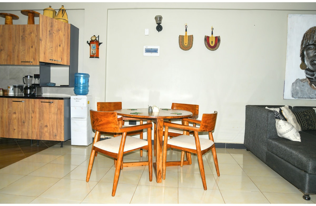 Escapa't a aquest encantador apartament de 3 dormitoris situat al cor de Bugolobi. Perfecte per a famílies, grups i viatgers de negocis. El nostre espai ofereix una base còmoda i privada per a la teva escapada a Kampala. L'espai està ben planificat amb una cuina totalment equipada, un balcó i tres dormitoris. Gaudeix de totes les comoditats d'una casa, incloent-hi wifi ràpida i seguretat les 24 hores, aigua calenta i distància a peu dels mercats locals, restaurants animats, bars i accés de pagament a un gimnàs proper.