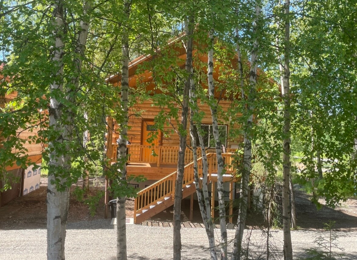 Vine a gaudir d'una estada refrescant en aquesta caseta de luxe de fusta personalitzada on et sentiràs com si fossis en una cabana en un arbre! Aquesta caseta té capacitat per a 5 persones, per la qual cosa és perfecta per a famílies o parelles que vulguin gaudir de la natura i de l'altra persona. Si tens pensat anar a pescar, fer piragüisme, anar a Hatcher Pass, fer senderisme o anar en bicicleta, aquest és el lloc que busques! Ofereix el millor dels dos mons que es troba a l'autopista Parks Highway per accedir fàcilment a totes les teves excursions d'un dia i a 300'a peu del riu Little Susitna al pati del darrere.