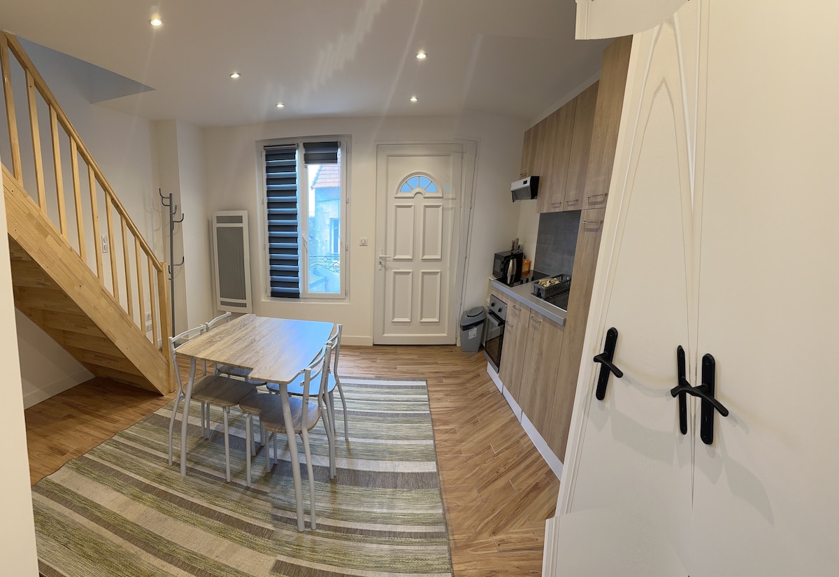 Dupleix al centre de la ciutat a prop de tots els llocs i serveis (restaurants, cruïlles, carnisseria, farmàcia, llibreria, forn, oficina de correus) A 10 minuts a peu de l'estació d'autobusos (600 m) A 45 minuts en tren de la Gare de l'Est de París. Allotjament reformat i totalment equipat: cuina equipada amb forn, vitroceràmica d'inducció, nevera amb congelador, llit doble a la planta superior amb bany i vàter, 2 clics a la sala d'estar amb televisor