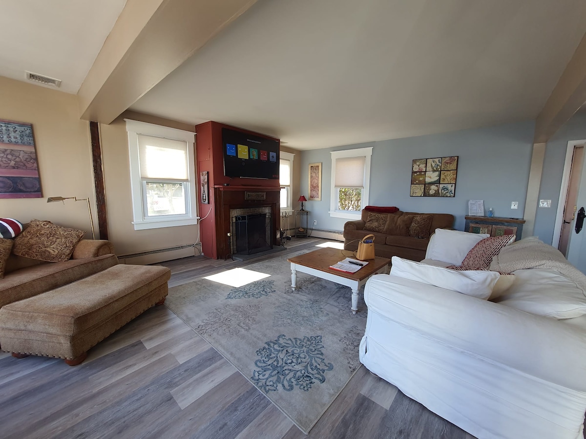 Escapa't a un apartament privat de 557 m² renovat i impressionant al tercer pis. 1883 Casa de camp victoriana a Blooming Grove, Nova York. Dissenyat per a 1-6 hostes, aquest espai ple de llum ofereix comoditat i encant clàssic en un entorn rural tranquil. Inclou llits de luxe, una banyera amb potes, dutxa amb porta francesa i una cuina petita amb un racó per esmorzar assolellat. Un santuari ideal. Vistes de flors silvestres, camp tranquil i vaques al costat. 3a planta a dalt de dues escales, recompensat amb un espai impressionant i vistes elevades.