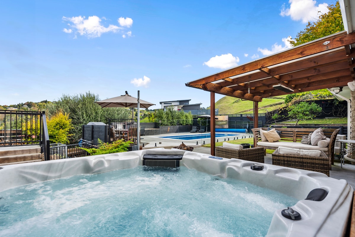 Descobreix la serenitat al nostre refugi Sugarloaf Rise amb el seu saló cobert de la piscina, amb una sauna i un balneari de fonts termals, perfecte per relaxar-te. Gaudeix de les vistes panoràmiques de la costa des de les zones d'estar i menjador. Dorm tranquil·lament en un dels tres dormitoris de luxe de mida king. Descobreix a prop amb un passeig fins al poble de Taradale o a un passeig fins a Church Road i Mission Estate Wineries. Aquest tranquil refugi combina relaxació i encant local, prometent una estada inoblidable.