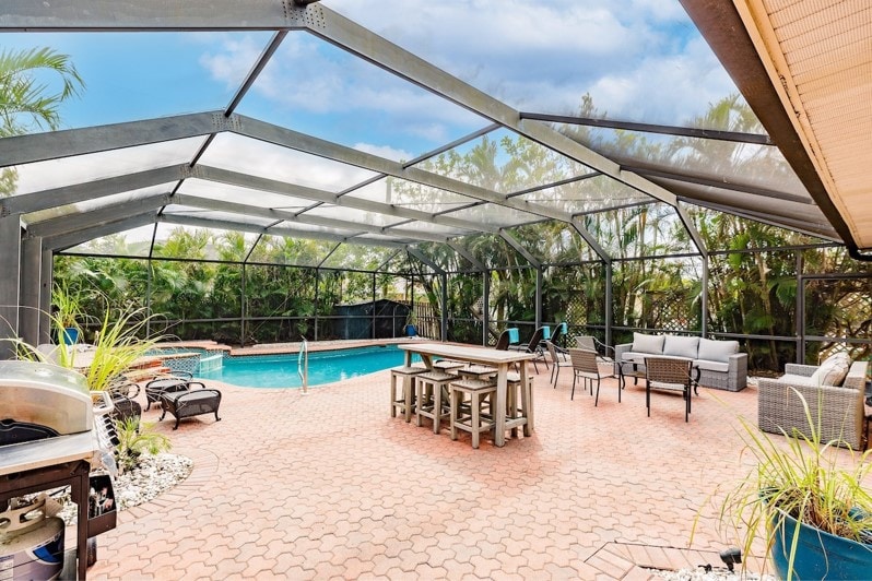 Escape to a serene Naples retreat where coastal luxury meets family comfort. Unwind in your private oasis—heated pool, lush tropical landscaping, and a sunny enclosed lanai for coffee or cocktails. Inside: bright open living + a chef’s kitchen stocked for real cooking. Sleep setup: king primary suite w/ ensuite, plus a king, a queen, and a bunk room. Fast Wi-Fi + workspace, laundry, and parking. Minutes to beaches and Mercato dining, shopping & nightlife—Nearby! Book now! Great for friends!