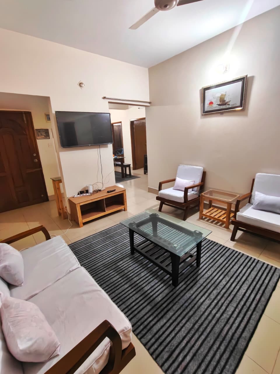 Aquest pis modern té dos dormitoris amb balcons i banys, una zona de menjador oberta, una sala d'estar i una cuina. La propietat es troba a la zona residencial de Bashundhara, a Dhaka, al bloc D, carretera 7. Molta llum natural i la brisa donaven vida a l’espai i creaven un ambient únic dins del complex d’apartaments. A més, des de l’apartament, els hostes poden accedir fàcilment a diversos serveis propers, com ara l’hospital Evercare, botigues (com Family Mart o Shwapno), cafeteries i restaurants.