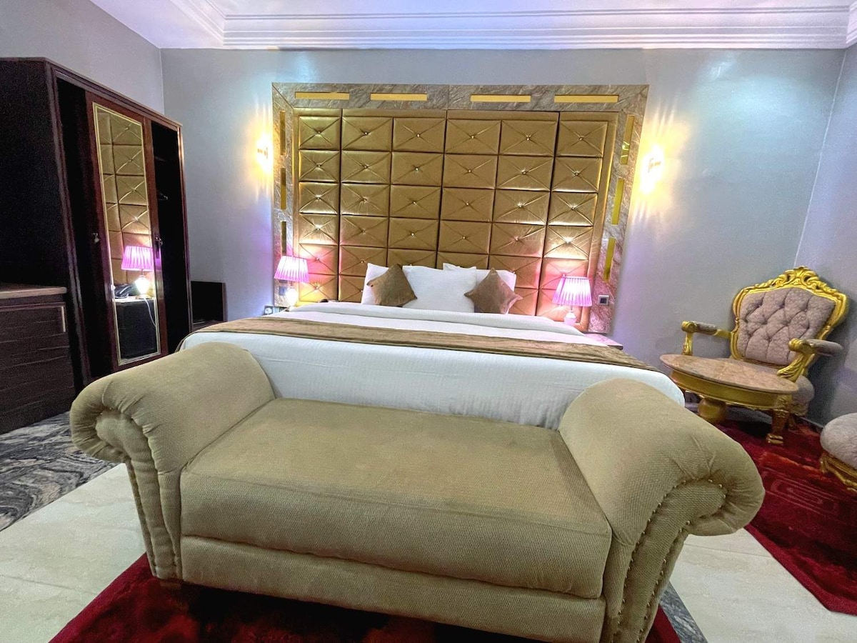 Royalty Luxury Serviced Apartment va ser concibiat i dissenyat com un allotjament per a la Reiala. És tranquil, únic, elegant i acollidor amb un mobiliari exquisit per donar la sensació d'un allotjament còmode. Situat en una finca tancada serena i segura i ofereix un accés còmode a tota part d'Abuja i als seus voltants. 247 electricitat amb sistemes solars/inverter, wifi de fibra òptica, ventilador, cuina moderna totalment equipada, seguretat armada, barri tranquil. Taula de billar estàndard, gronxador de relax, piscina privada i rentadora.