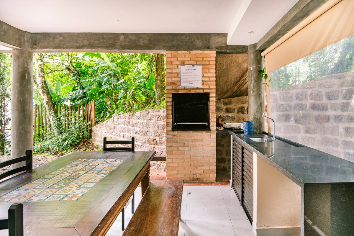 Apaixone per a aquesta casa a només 20 metres de la platja de Sapê. Amb 2 dormitoris. Amb 1 suite més 1 bany, cuina completa (fogons, nevera dúplex, microones, batedora, olles, etc.), sala d'estar amb televisor intel·ligent de 32" amb SKY, sofà còmode i taula. L'ampli balcó amb hamaca, taula i barbacoa ofereix moments de relaxació per a tota la família. 1 plaça de pàrquing tancada. Conjunt de 4 cases en complex residencial amb condomini, seguretat, vigilància i comerços propers per explorar a peu.