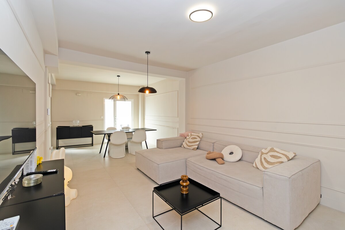 This brand new apartment is meant for design lovers. We took care during the renovation of every detail and created a space where no one will ever want to leave. The apartment is carefully decorated and has light coming from every corner. Open Kitchen fully integrated with the living room and three balconies make up the main space. 2 bedrooms each one his own bathroom the second half of the house. During the night the lights will captivate you. IMPORTANT: No elevator