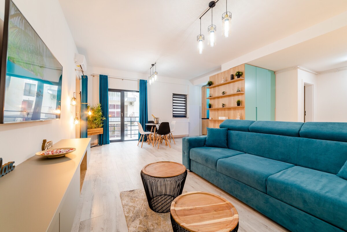 A només 70 metres de la platja, amb una vista relaxant al mar, aquest modern apartament a Mamaia Nord és el refugi ideal per a unes vacances inoblidables. Lluminós, elegant i totalment equipat: tot el que necessites per sentir la brisa marina i escoltar les onades des del balcó.