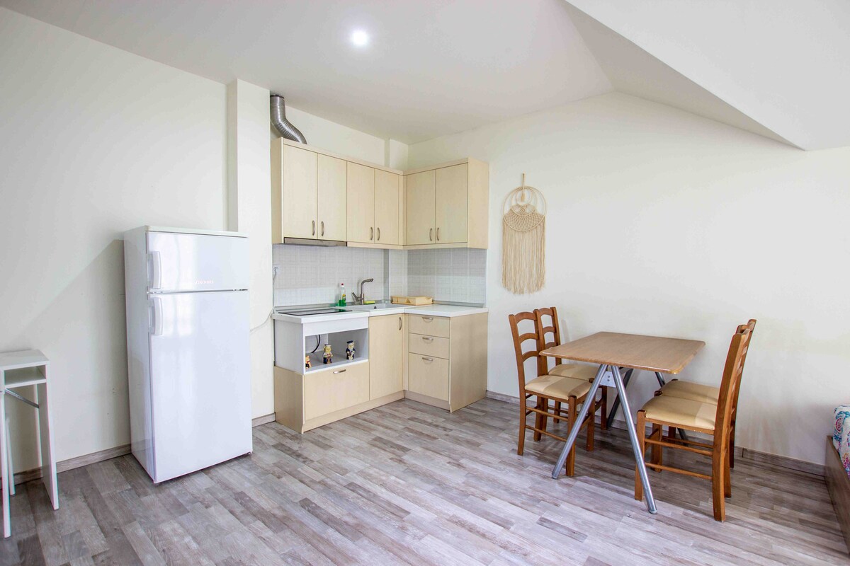 L'apartament està situat al primer pis d'una casa unifamiliar privada a l'entrada del nucli antic, al centre, amb una vista fantàstica de Kamares. Totalment renovat el 2020 amb una decoració moderna, equipat amb articles de cuina/bany, aire condicionat, rentadora i un gran balcó que farà que la teva estada sigui inoblidable!La seva ubicació única és ideal per visitar els llocs d'interès de la ciutat a peu. A la zona hi trobareu pintoresques cafeteries, bars, restaurants, supermercats i parcs infantils. Estarem encantats d'allotjar-vos!