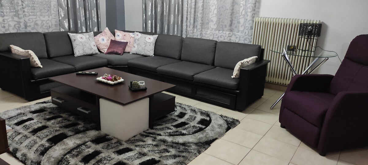 Descobriràs un barri típic grec. El pis és adequat per a 1-10 persones, incloent-hi nens. Té 71 metres quadrats, 3r pis. Restaurants, supermercats i botigues a prop. Tot el que necessites per viure en família i cuinar. En 30 minuts, a peu, vas al centre de la ciutat, en 15 minuts amb autobús, passa cada 8 minuts un autobús, a 45 metres de la parada d'autobús. Aparcament gratuït al carrer. Accés fàcil a la carretera de circumval·lació. Càlid a l'hivern, fresc a l'estiu. Netedat
