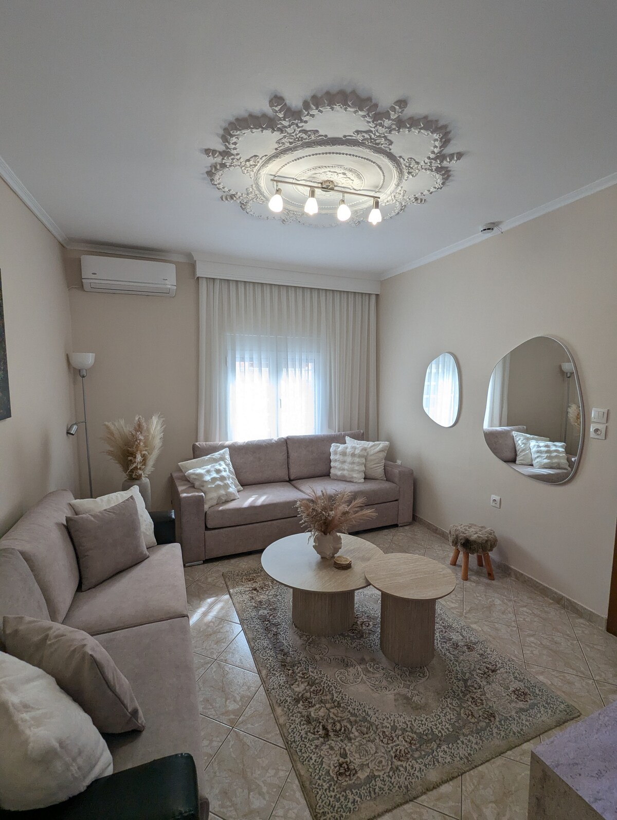 Experience a luxurious and modern stay in this elegant apartment in Sykies, just minutes from Thessaloniki’s city center. Designed for comfort and style, it accommodates up to 4 guests and is ideal for families, couples, or business travelers. Enjoy a refined urban retreat in a quiet residential area with easy access to shops, cafés, and public transport, offering the perfect balance between relaxation and city life.
