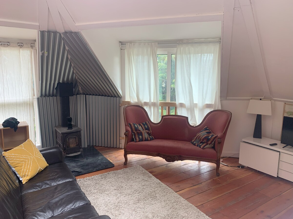 The Treehouse in bonnington Falls is a stylish & cozy getaway and home base for your outdoor adventures 15 minutes away from Nelson. Enjoy a relaxing night next to the fire and cooking or barbecuing in a fully equipped kitchen. Settle in for a peaceful night sleep in the master king bed or guest queen bed. Take in the exceptional views of the surrounding mountains and treetops while relaxing in the jacuzzi spa hot tub on the rooftop patio.