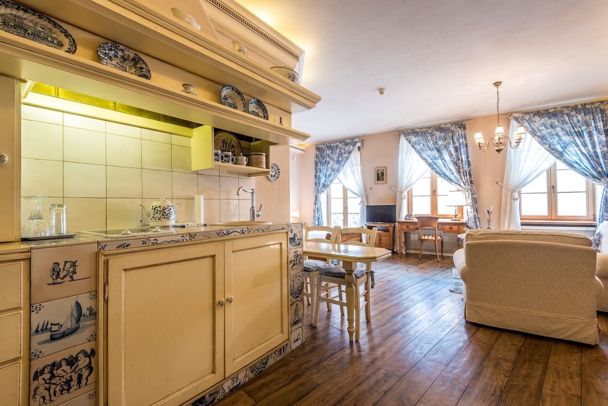 ‚House of Nobles‘ is a freshly renovated 2 storey apartment with the inner courtyard and personal terrace in the Vilnius old town. The apartment is full of adorable works of art and its history goes back to XVIII – XIX centuries. During the entire day silence and safety are guaranteed because of a quiet and friendly neighborhood and constantly locked gates reduce street noise.