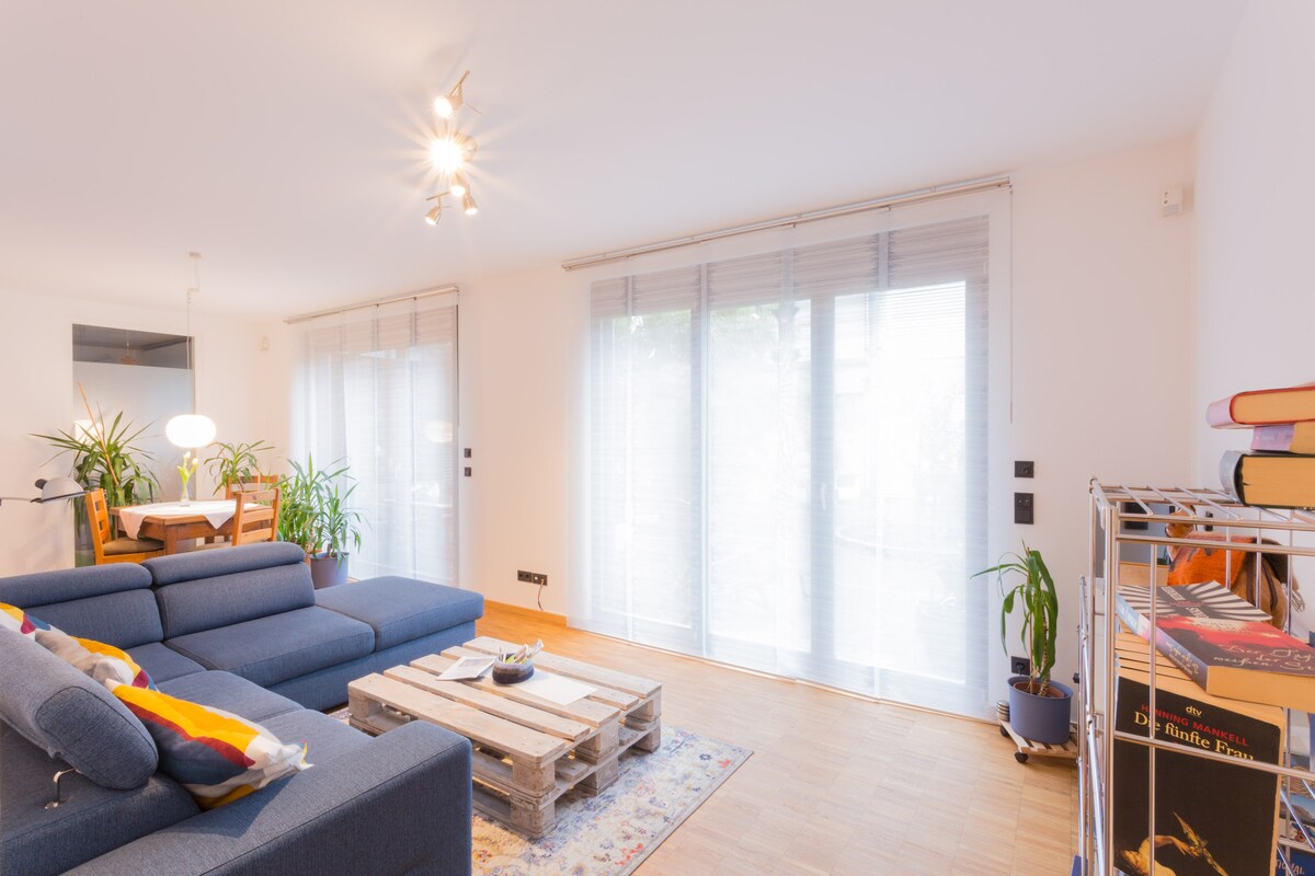 Bonic pis de 80m2 a la planta baixa, totalment nou construït l'any 2018, amb Sauna, pati, llar de foc, bany amb banyera i gran dutxa i Cuina totalment equipada. Molt cèntric, a 2 min. del metro, a 5 min. de tots els restaurants/centres comercials i de l'encantadora ciutat històrica d'Oberursel, a 10 min. pel rierol Urselbach (petit rierol) fins a la piscina. Frankfurt/M. 10 min. amb cotxe o 20 min. amb metro. L'Oberursel està situat directament al Großer Feldberg i ofereix moltes possibilitats d'excursions.